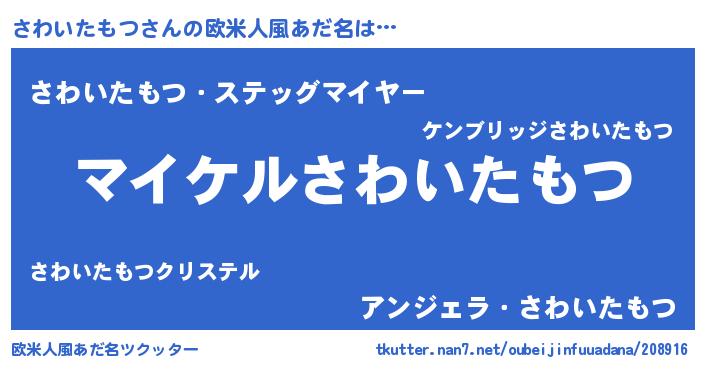 | 男性向けラノベタイトル風あだ名 | 『さわいたもつの憂鬱』 |