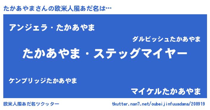 | 男性向けラノベタイトル風あだ名 | 『うちのたかあやまが世界を掌握している!』 |