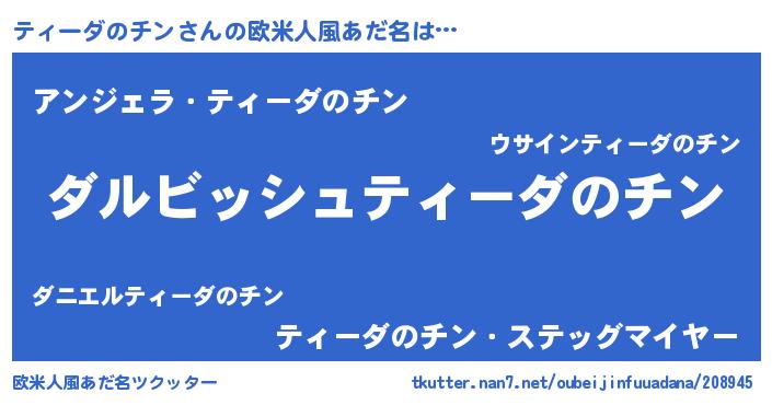 | 男性向けラノベタイトル風あだ名 | 『ティーダのチンという概念が存在しない退屈な世界 』 |