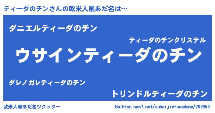 | 女子向けラノベタイトル風あだ名 | 『ティーダのチンの卵を拾いまして』 |