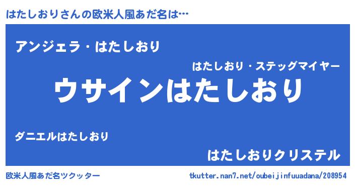 | 女子向けラノベタイトル風あだ名 | 『はたしおりの卵を拾いまして』 |