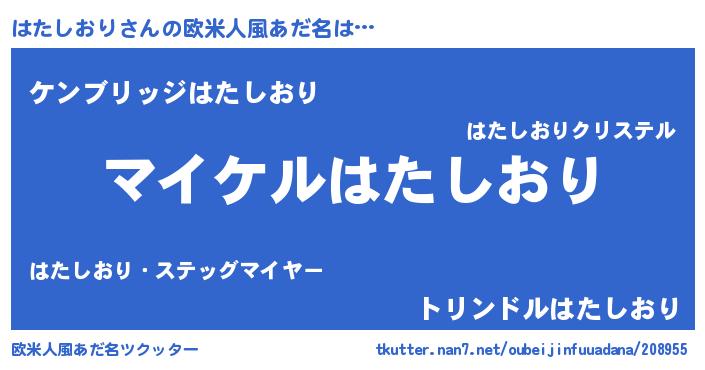 | 男性向けラノベタイトル風あだ名 | 『ハタシオリアートオンライン』 |