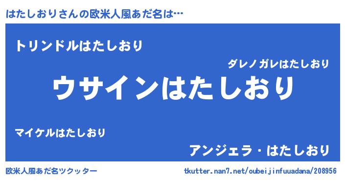 | 男性向けラノベタイトル風あだ名 | 『はたしおりの嫁は女の子じゃないと思った?』 |