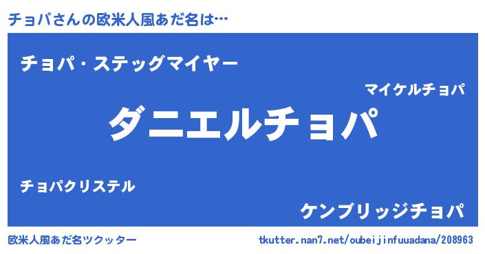 | ヒーロー風カッコイイあだ名 | 『正義の使者チョパ』『スーパーチョパ』 |
