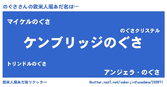 | 男性向けラノベタイトル風あだ名 | 『Re:のぐさから始める異世界生活』 |