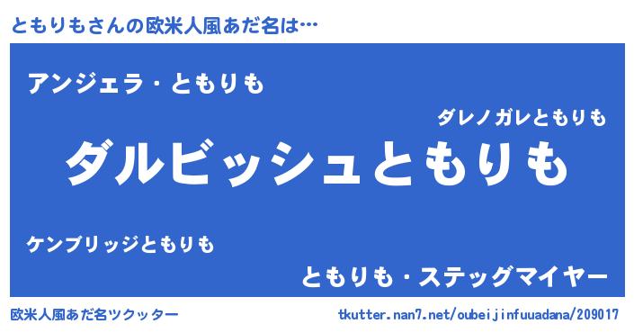 | 男性向けラノベタイトル風あだ名 | 『ともりもという概念が存在しない退屈な世界 』 |