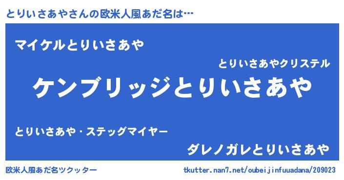 | 意味不明あだ名 | 『自称とりいさあや』 |
