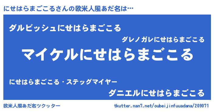 | ツイッター | にせはらまごこるさんのツイッターID『namakemono_kun』 |