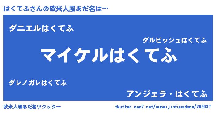 | ヘコむあだ名 | 『はくもー』『はくてふ(笑)』『豆乳』 |