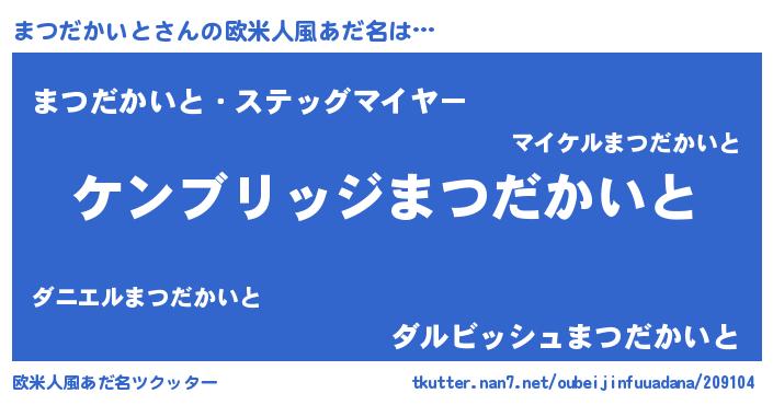 | 意味不明あだ名 | 『自称まつだかいと』 |