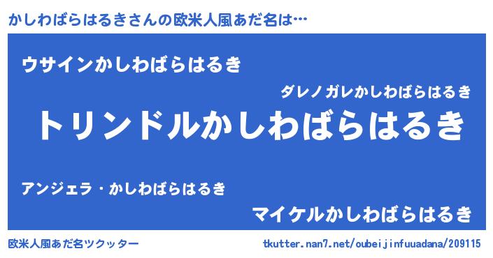 | 胡散臭い通販商品みたいなあだ名 | 『信頼と実績のペンダント…その名も「かしわばらはるき」』 |