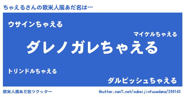 | ヘコむあだ名 | 『ちゃ太郎』『ちゃえる(遠い目)』 |