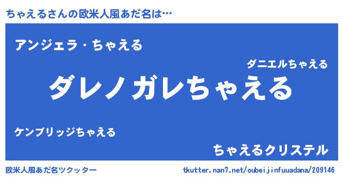 | 意味不明あだ名 | 『住所不定無職ちゃえる(62歳)』 |