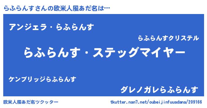 | ヒーロー風カッコイイあだ名 | 『仮面ラフダー』『慈愛の使者らふらんす』 |