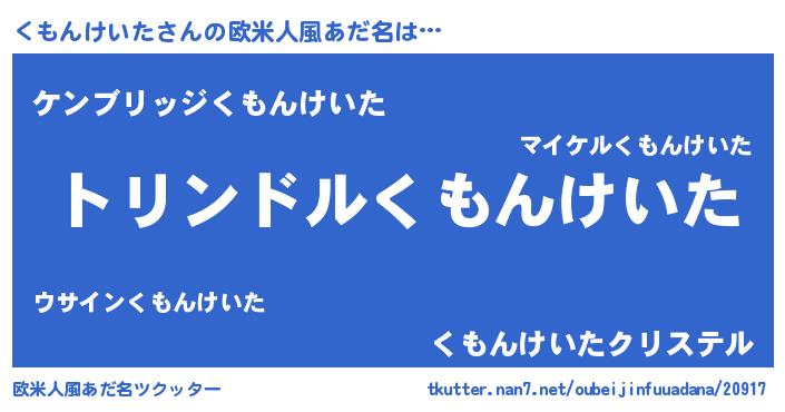 | 男性向けラノベタイトル風あだ名 | 『くもんけいた~年齢イコール彼女いない歴の魔法使い~』 |