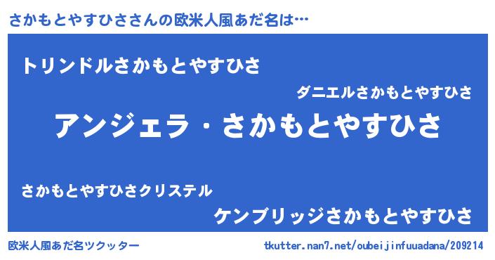 | 男性向けラノベタイトル風あだ名 | 『さかもとやすひさに滅ぼされるだけの簡単なお仕事です』 |