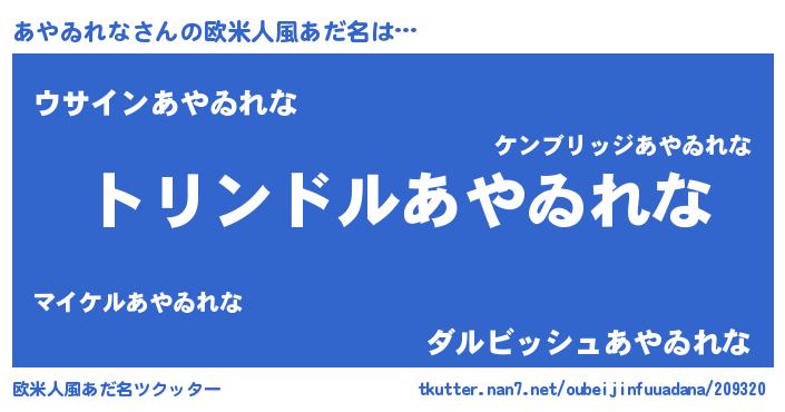| 男性向けラノベタイトル風あだ名 | 『転生したらあやゐれなだった件』 |