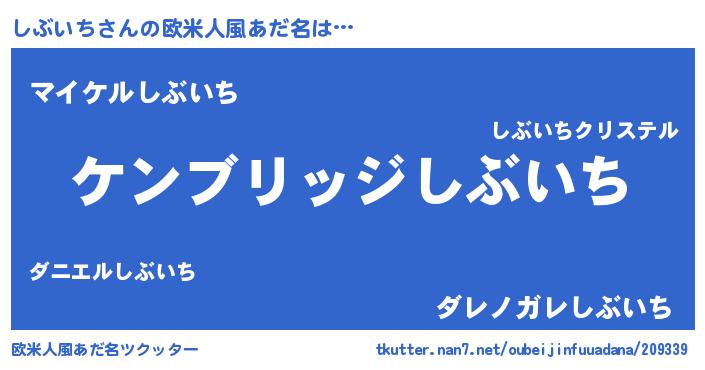| 男性向けラノベタイトル風あだ名 | 『Re:しぶいちから始める異世界生活』 |