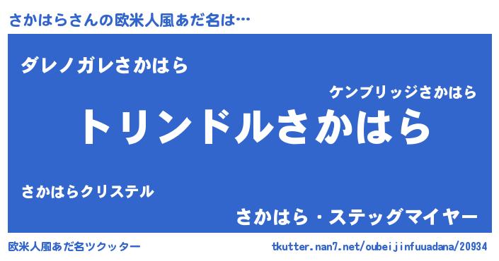 | 男性向けラノベタイトル風あだ名 | 『サカハラスレイヤー』 |