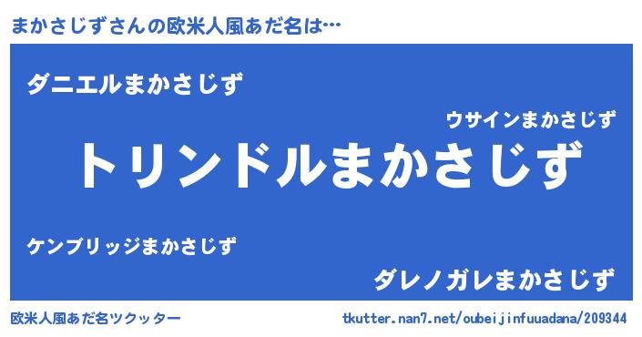 | 男性向けラノベタイトル風あだ名 | 『転生したらまかさじずだった件』 |