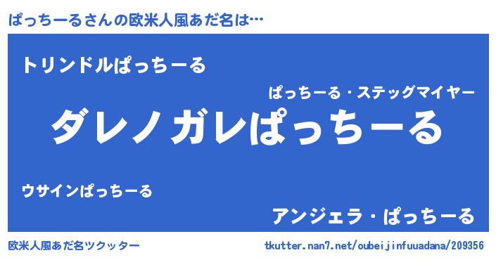 | 男性向けラノベタイトル風あだ名 | 『魔弾の王とぱっちーる』 |