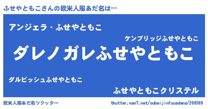| 男性向けラノベタイトル風あだ名 | 『魔弾の王とふせやともこ』 |