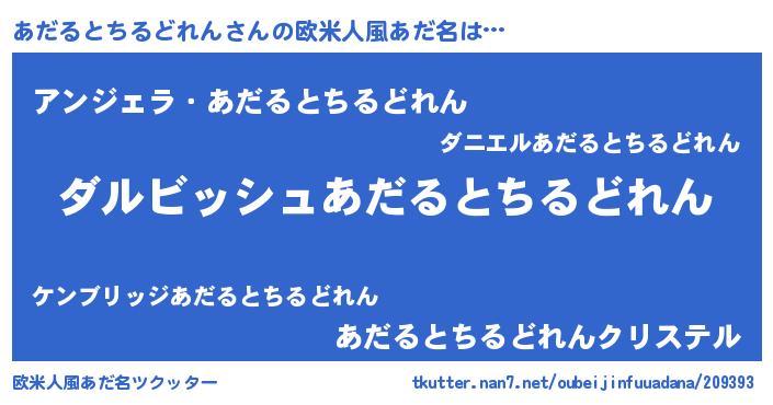 | 男性向けラノベタイトル風あだ名 | 『誰もが恐れるあのあだるとちるどれんが、ぼくの専属メイドになるようです。』 |