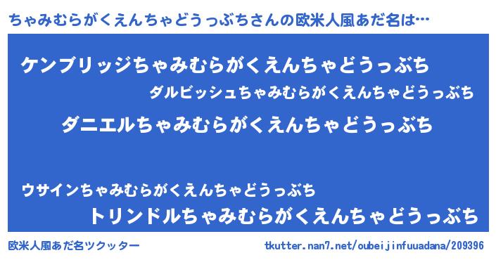 | 男性向けラノベタイトル風あだ名 | 『おまえをオタクにしてやるから、俺をちゃみむらがくえんちゃどうっぶちにしてくれ! 』 |