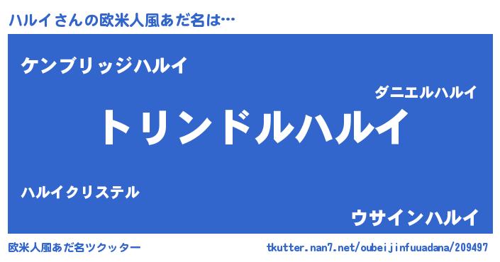 | 男性向けラノベタイトル風あだ名 | 『ハルイ~年齢イコール彼女いない歴の魔法使い~』 |