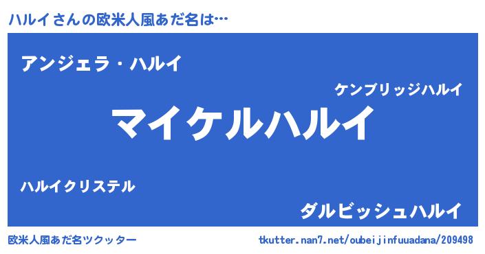 | 意味不明あだ名 | 『ペロリンハルイ』『永久保存ハルイ』 |