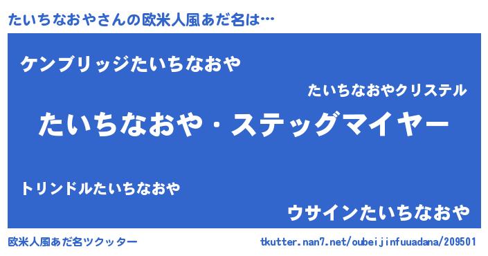 | 男性向けラノベタイトル風あだ名 | 『うちのたいちなおやが世界を掌握している!』 |
