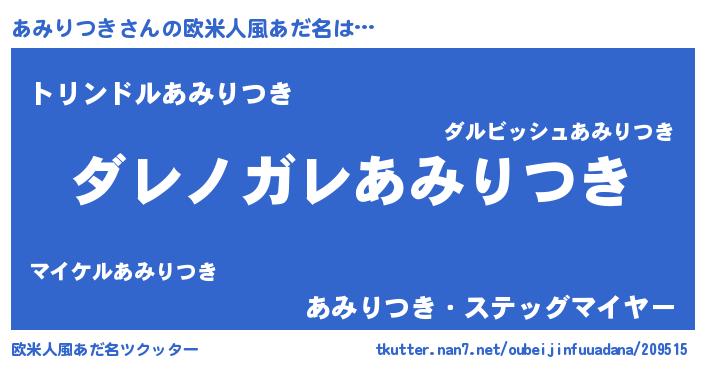 | 意味不明あだ名 | 『住所不定無職あみりつき(2歳)』 |