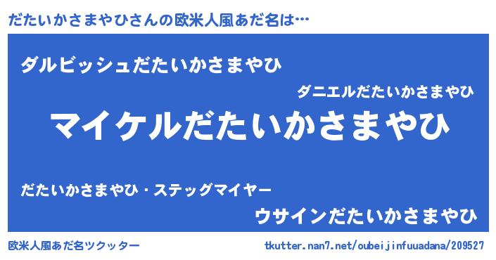 | 男性向けラノベタイトル風あだ名 | 『だたいかさまやひの憂鬱』 |