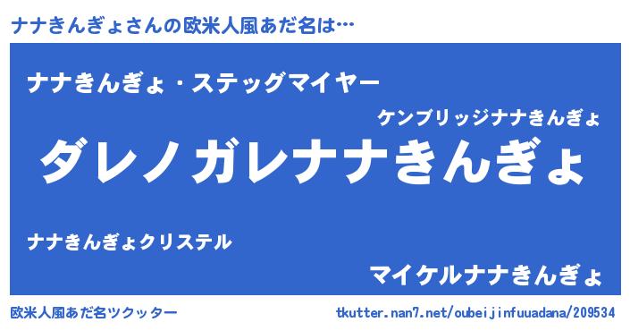 | 男性向けラノベタイトル風あだ名 | 『この素晴らしい世界にナナきんぎょを!』 |