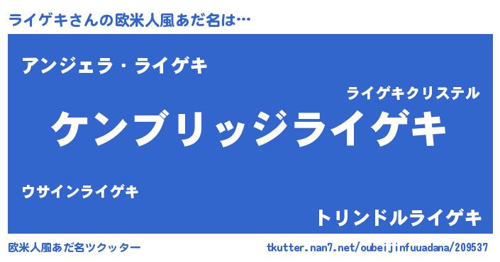 | 意味不明あだ名 | 『自称ライゲキ』『たけのこ科ライゲキ属』 |