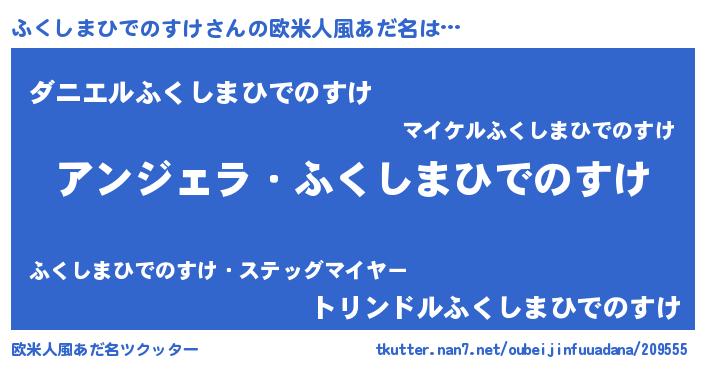 | 男性向けラノベタイトル風あだ名 | 『はたらくふくしまひでのすけさま!』 |