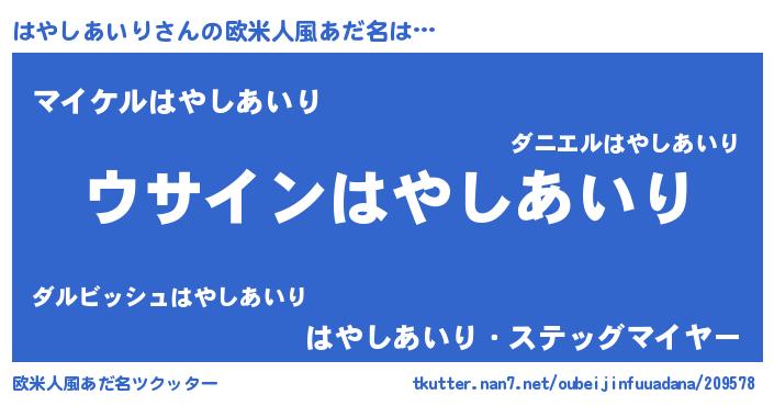 | 胡散臭い通販商品みたいなあだ名 | 『全米が絶賛したサプリメント…その名も「はやしあいり」』 |