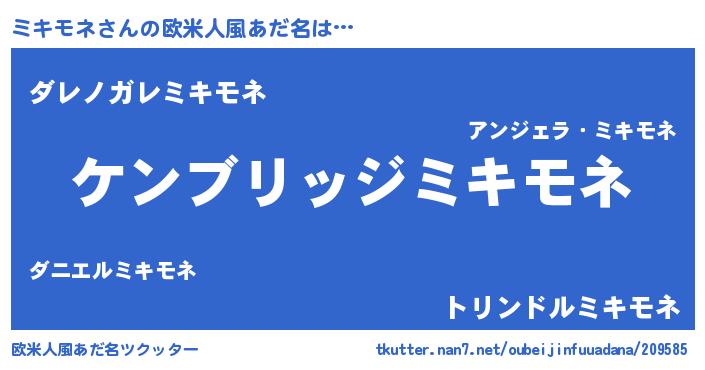 | 意味不明あだ名 | 『自称ミキモネ』『なめこ科ミキモネ属』 |