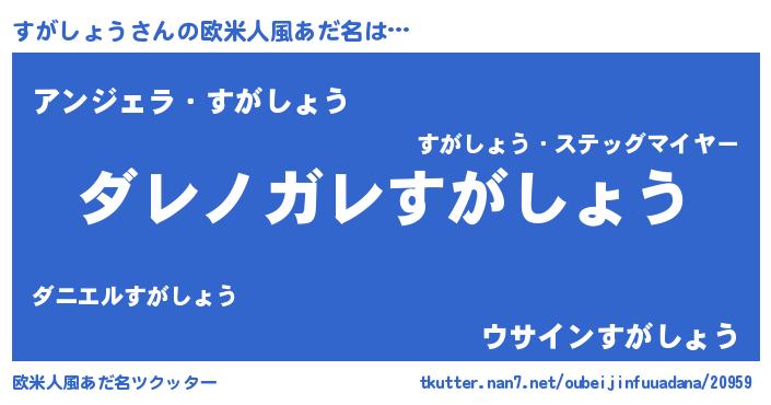 | 男性向けラノベタイトル風あだ名 | 『この素晴らしい世界にすがしょうを!』 |