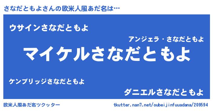| ヒーロー風カッコイイあだ名 | 『スーパーサナダトモヨ』『暗黒騎士サナ』 |