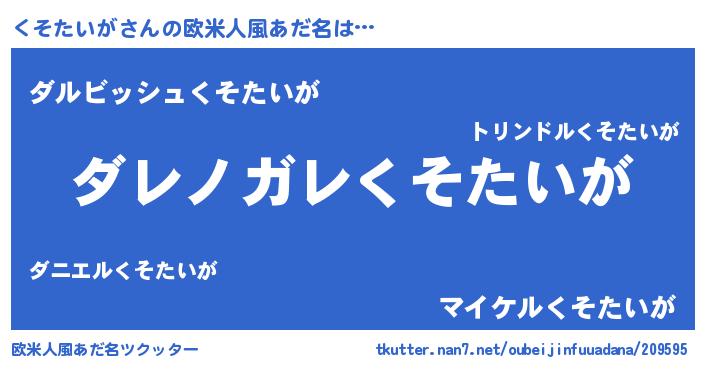 | 意味不明あだ名 | 『住所不定無職くそたいが(4歳)』 |