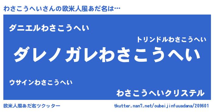 | 男性向けラノベタイトル風あだ名 | 『この素晴らしい世界にわさこうへいを!』 |