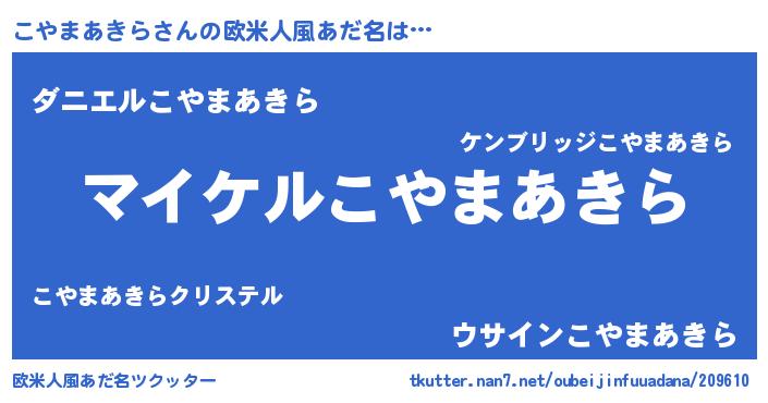 | 男性向けラノベタイトル風あだ名 | 『こやまあきらの憂鬱』 |