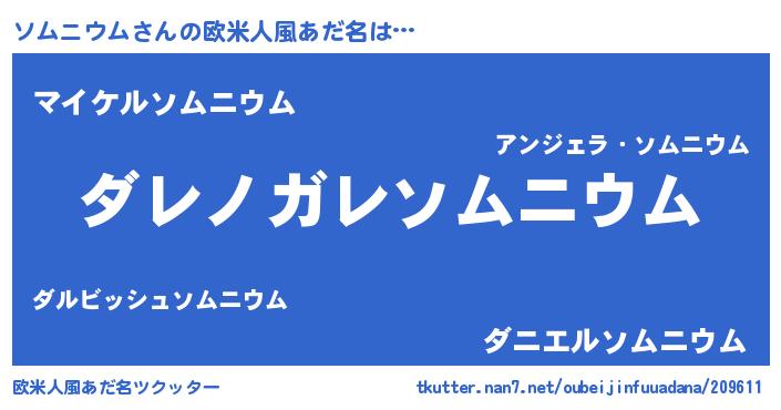 | 男性向けラノベタイトル風あだ名 | 『魔弾の王とソムニウム』 |