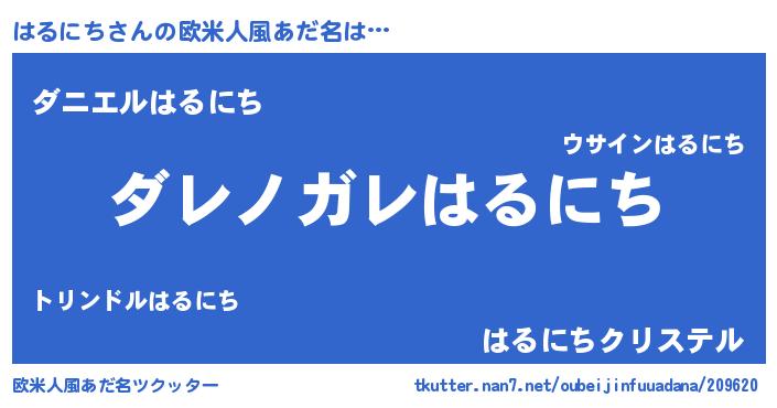 | 男性向けラノベタイトル風あだ名 | 『この素晴らしい世界にはるにちを!』 |