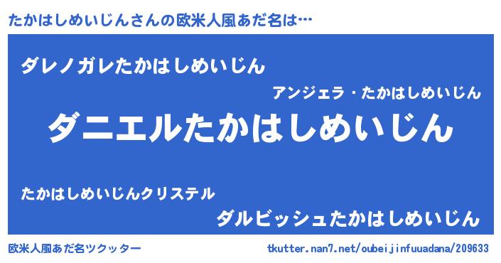 | ヘコむあだ名 | 『たかはしめいじん(笑)』『なまこ酢』 |
