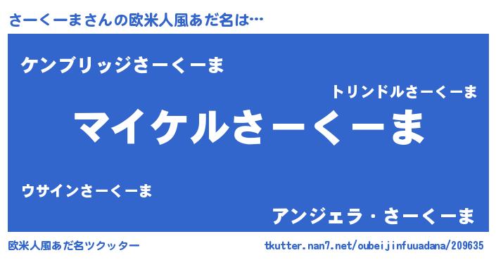 | 男性向けラノベタイトル風あだ名 | 『さーくーまの憂鬱』 |