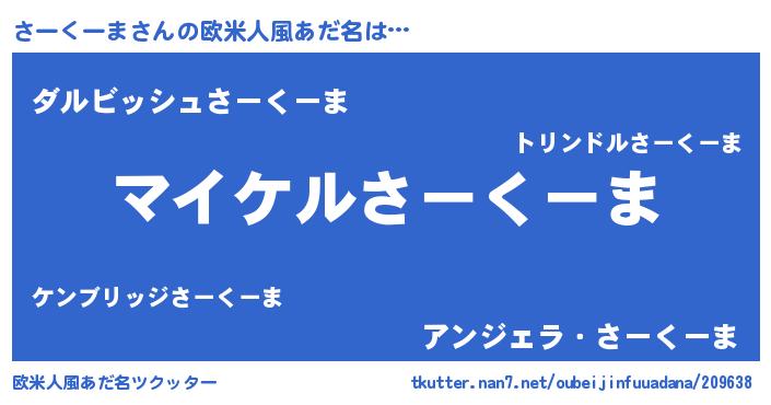 | 男性向けラノベタイトル風あだ名 | 『さーくーまの憂鬱』 |