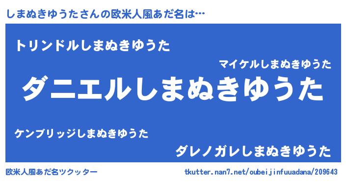 | 意味不明あだ名 | 『眠気覚ましガムしまぬきゆうた味』 |