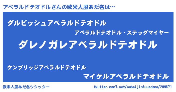 | 男性向けラノベタイトル風あだ名 | 『この素晴らしい世界にアベラルドテオドルを!』 |